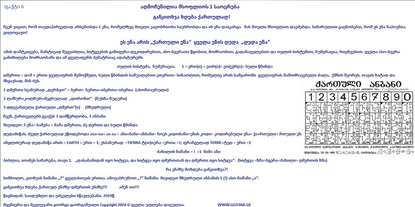 მსოფლიოს 1 საოცრება. ქართული ენა 2024-01-14 14:59:08 მსოფლიოს 1 საოცრება#ქართული ენა#განკითხვა ხდება ქართულად#წიგნი საიდუმლო და უძველესი სწავლებანი# სამი ანბანი# 3 დამწერლობა#ასომთავრული#ნუსხა-ხუცური#ხუცური#მხედრული#სამება#დედა ენა#გიორგი გიორგაშვილი#მსოფლიოს უძველესი ენა#მსოფლიო ცივილიზაციის ცენტრი#სამოთხე