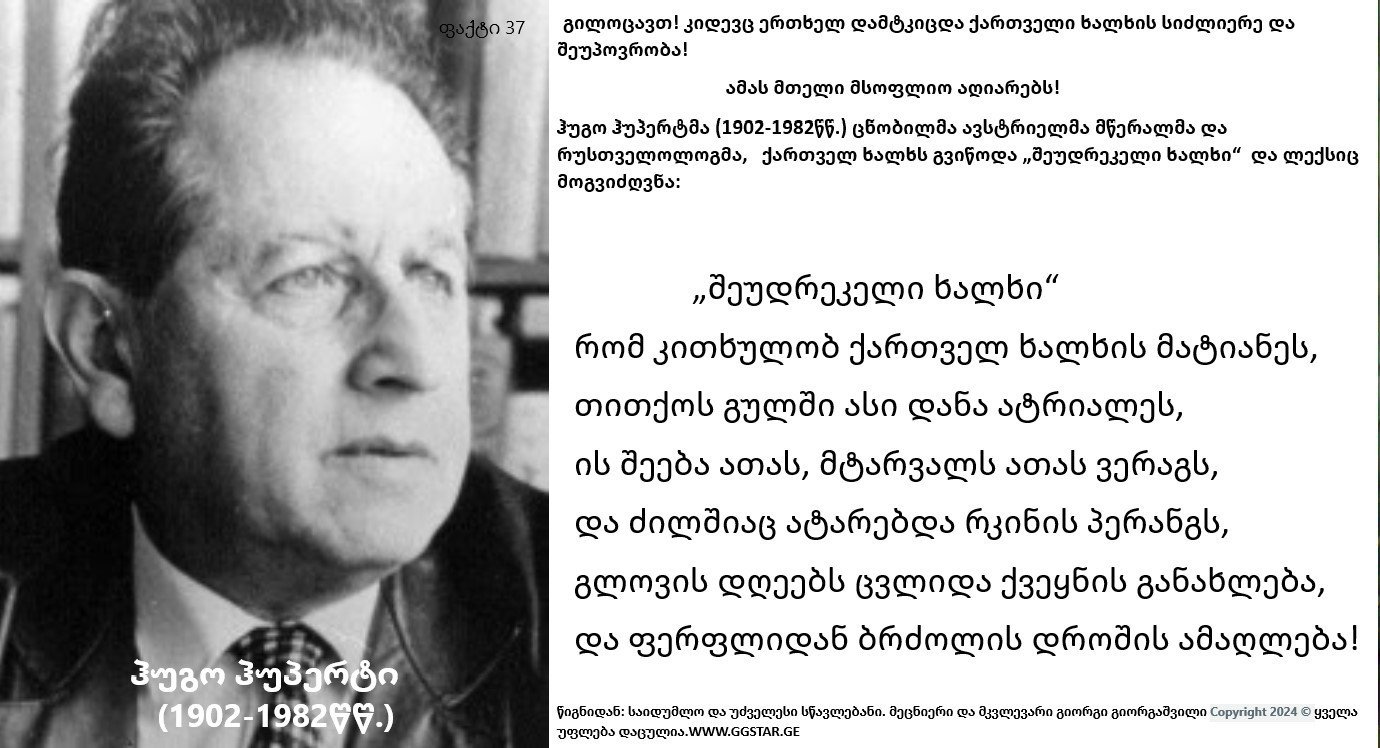 ქართველები ყველაზე შეუპოვარი და შეუდრეკელი ხალხია, ასე ახასიათებდა ქართველებს, ცნობილი ავსტრიელი მწერალი ჰუგო ჰუპერტი.
